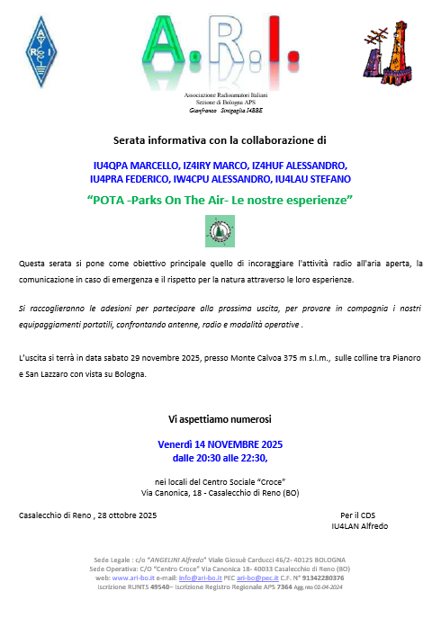 Intestato a: Associazione Radioamatori Italiani sezione di Bologna aps